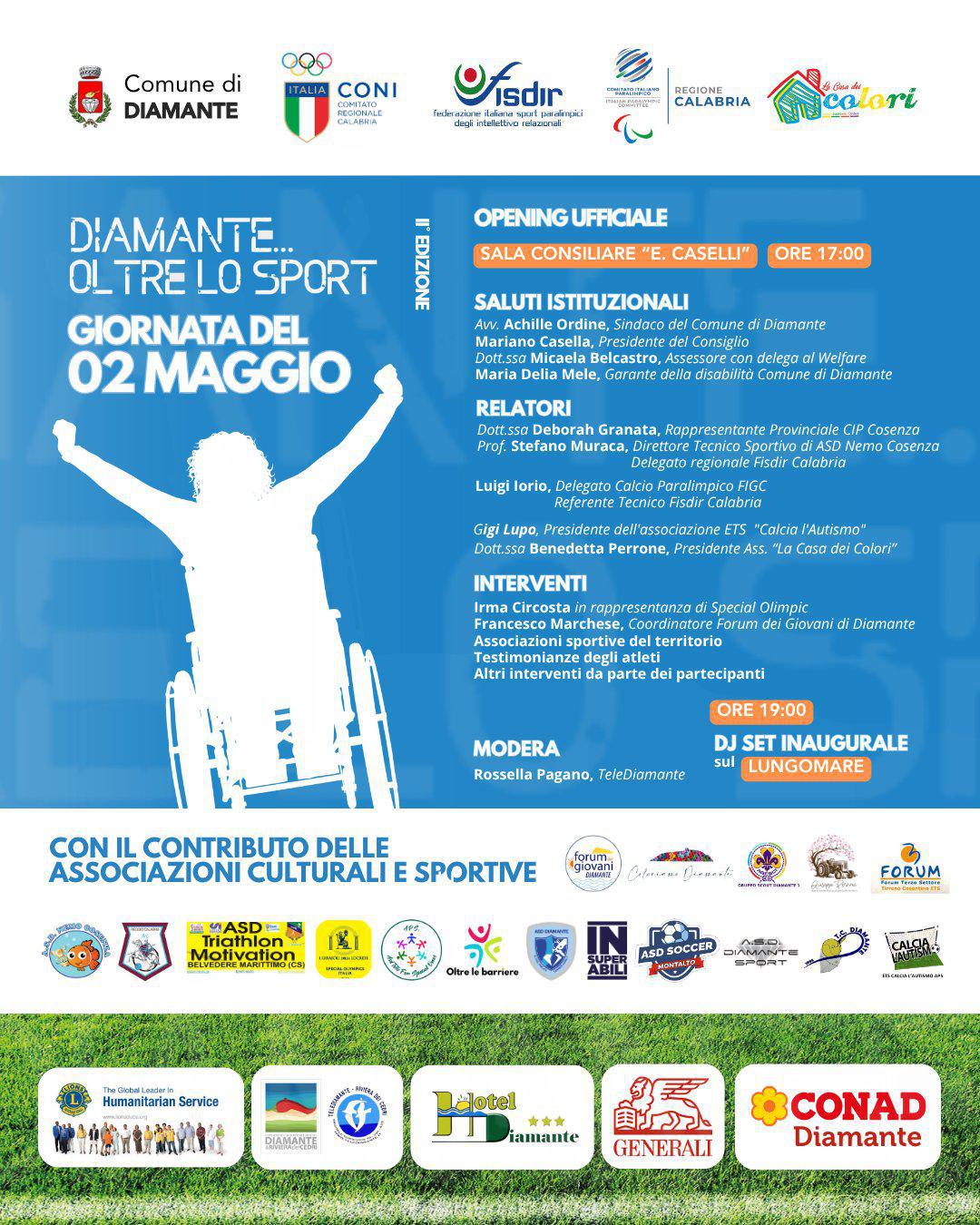 Con il patrocinio del CONI, della FISDIR, del Comitato Italiano Paralimpico e del Comune di Diamante.